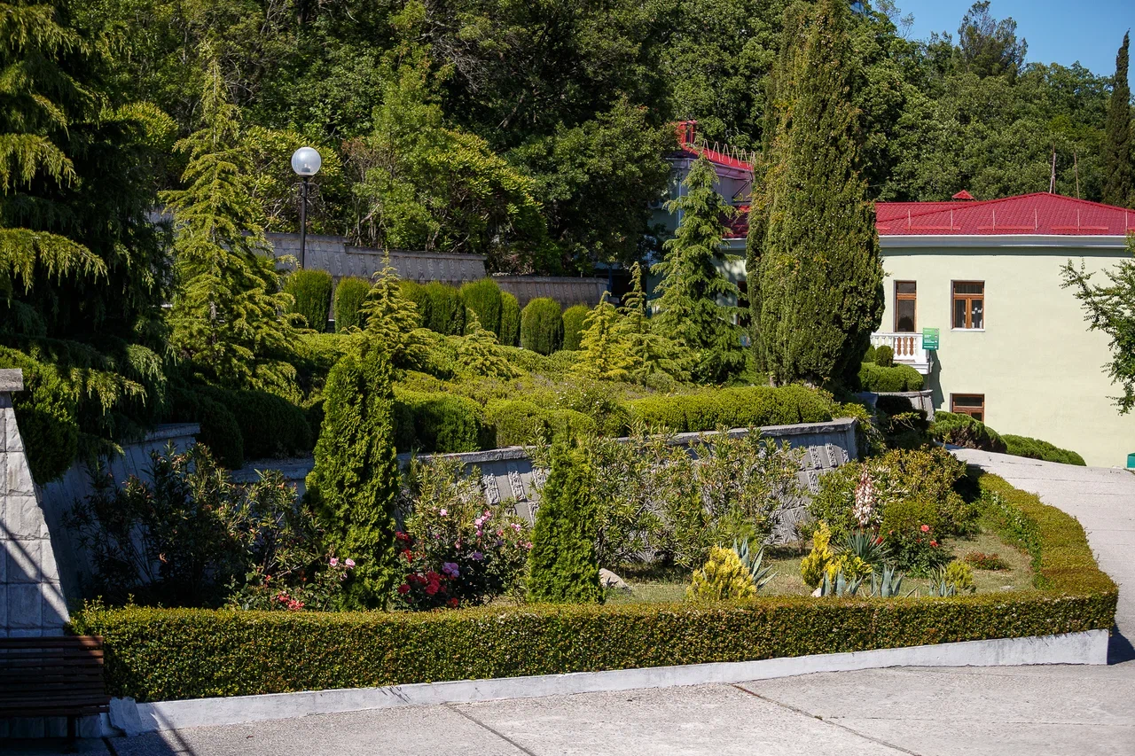 Санаторий имеет огромную красивую территорию в природном парке. На территории большое количество спусков и подъемов, в том числе со ступеньками. Для семей с колясками и пожилых людей может быть неудобно. Но это особенность всего Кореиза. Номера...