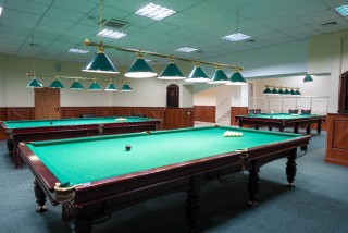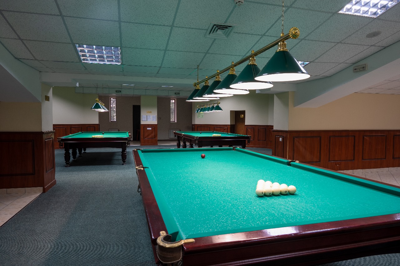 Бильярд в санатории «Белоруссия» оборудован тремя профессиональными столами фирмы «Snodker» и аксессуарами для русского бильярда, расположение столов не мешает игрокам наслаждаться игрой,