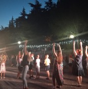Гостей санатория порадовали выступления заслуженного артиста эстрадного искусства, солиста Крымской государственной филармонии – Дмитрия Костенко, солисты школы бального танца «Ritmolov», солистка театра танца «Нартаки» — Наталья Ленчик. Восхищал своим выступлением председатель национально-культурной автономии «Сябрыня», лауреат международных конкурсов и фестивалей, заслуженный работник культуры АРК – Виталий Бартохов. Под звуки саксофоны, в исполнении солиста театра духовой музыки «Ялта» Александра Мишина, гостей угощали фуршетом и бокалом шампанского. Все присутствующие приняли участие в розыгрыше подарочных сертификатов, главными из которых, была экскурсия на двоих «Ялта – жемчужина Южного берега».