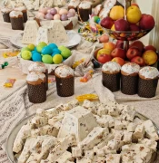 В этом году мы постарались создать для вас особую атмосферу праздника — душевную, светлую и по‑настоящему весеннюю. На территории санатория священнослужителем было совершено освящение традиционных пасхальных угощений. Многие гости присоединились к этой благочестивой традиции, наполнив утро особым духовным смыслом. Был подготовлен праздничный завтрак с пасхальными угощениями: ароматные куличи, творожная пасха, разноцветные крашеные яйца и другие праздничные блюда. Мы искренне благодарны каждому, кто разделил с нами этот светлый праздник! Видеть ваши улыбки, радость общения и атмосферу единения — лучшая награда для нашей команды. Пусть Пасха принесёт в ваш дом мир, радость и благодать, а воспоминания о проведённых в нашем санатории днях согревают душу ещё долго!