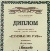 Первое место среди лучших отелей и санаториев Крыма! Невероятно гордимся Земфирой Наримановной!