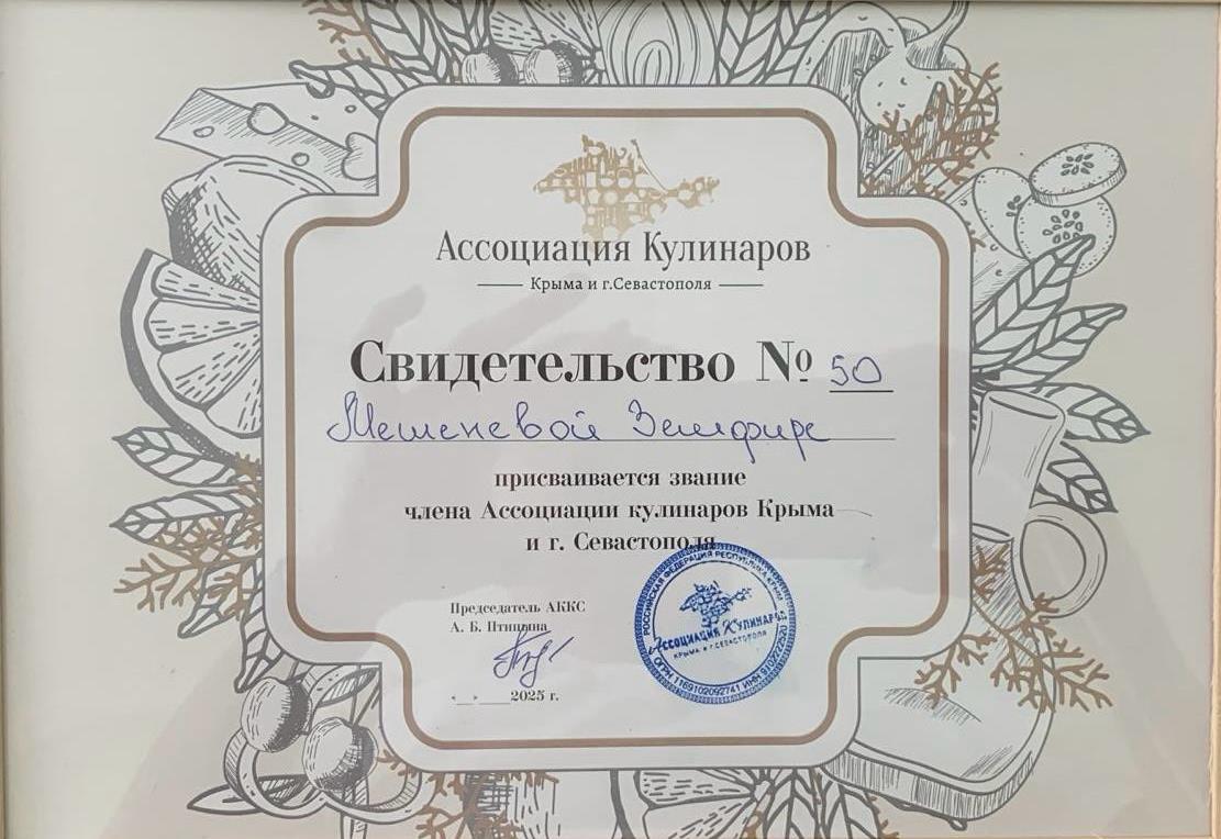 Мы бесконечно счастливы за нашего шеф-повара Мешеневу Земфиру Наримановну, которая победила в акции в сфере курортов и туризма «ПРИЗНАНИЕ ГОДА» в номинации «Лучший повар».