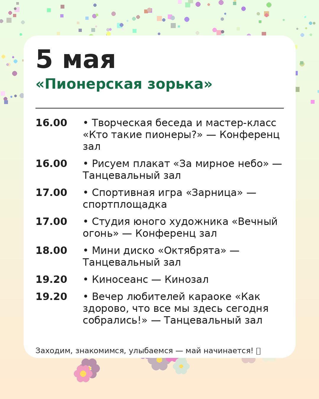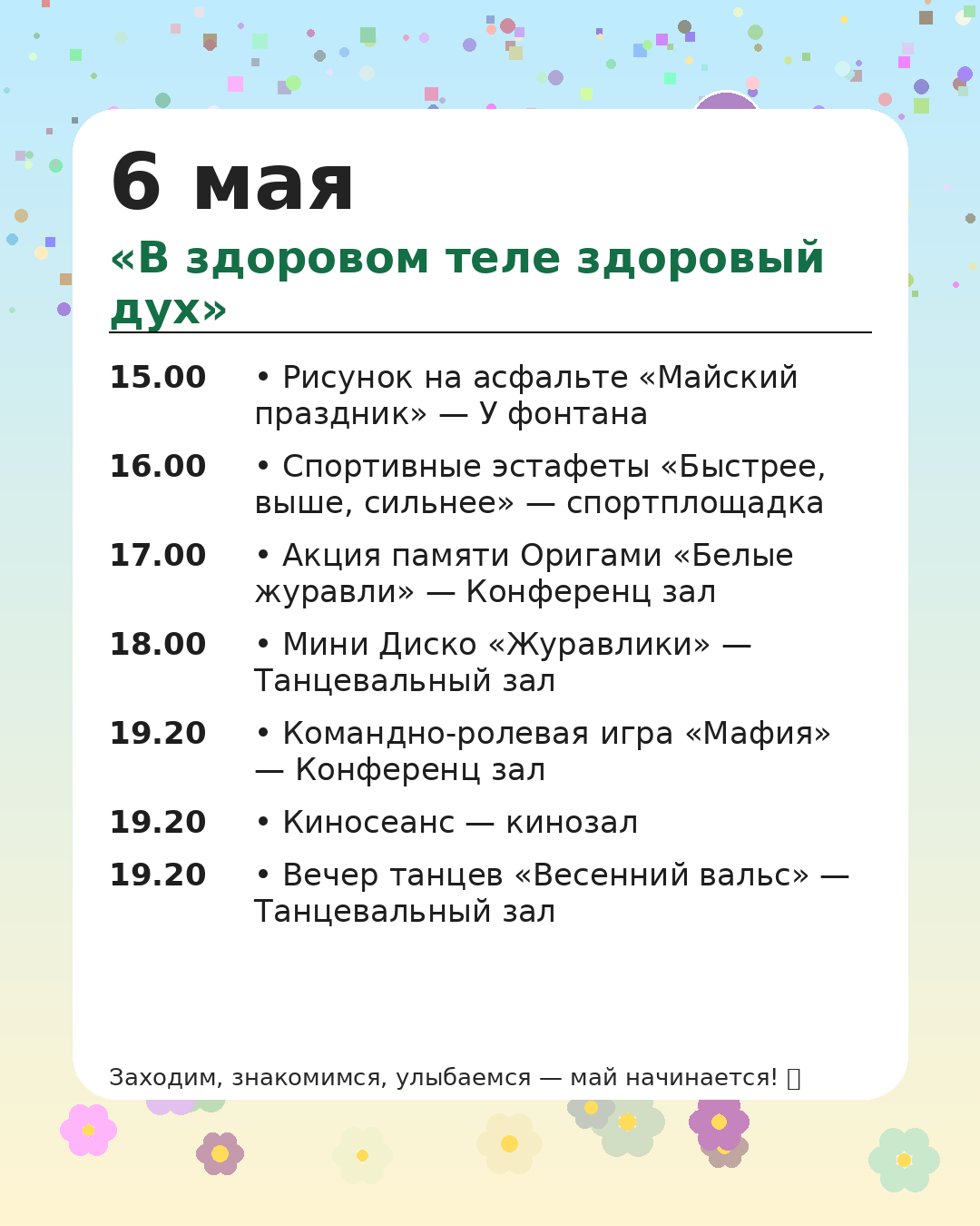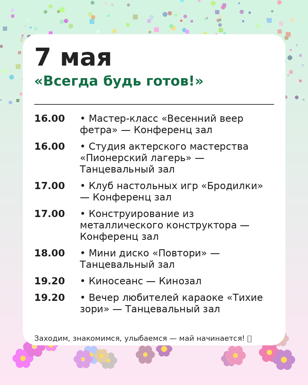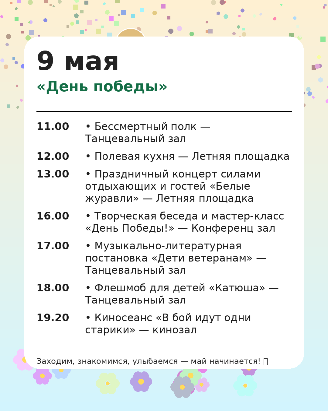 *Администрация оставляет за собой право вносить изменения в программу мероприятий, чтобы сделать Ваш отдых ещё более комфортным и разнообразным.