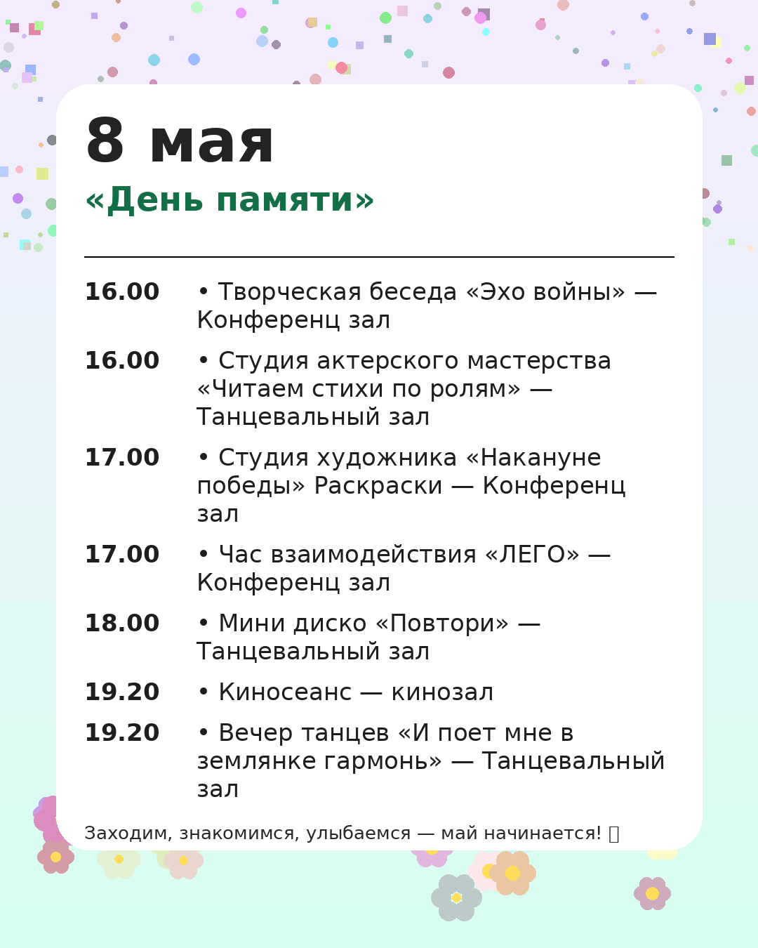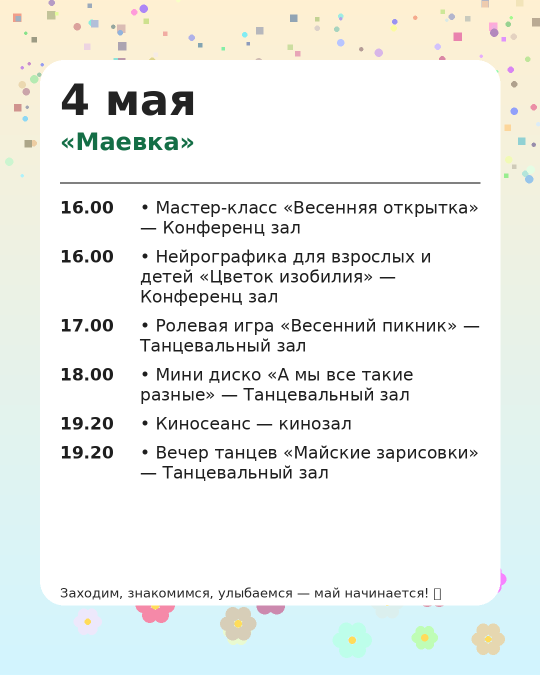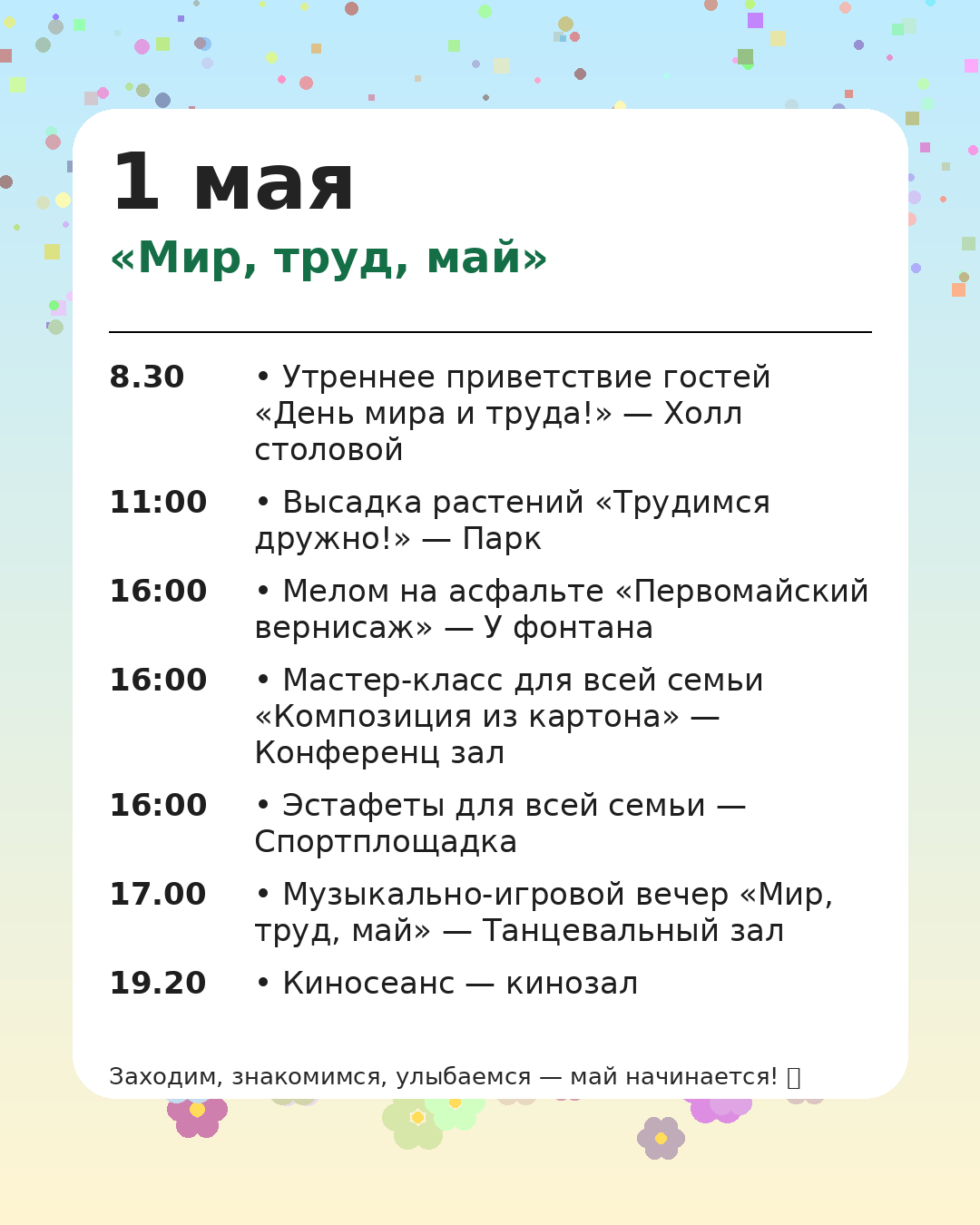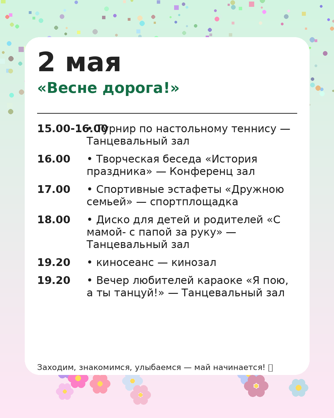 *Администрация оставляет за собой право вносить изменения в программу мероприятий, чтобы сделать Ваш отдых ещё более комфортным и разнообразным.
