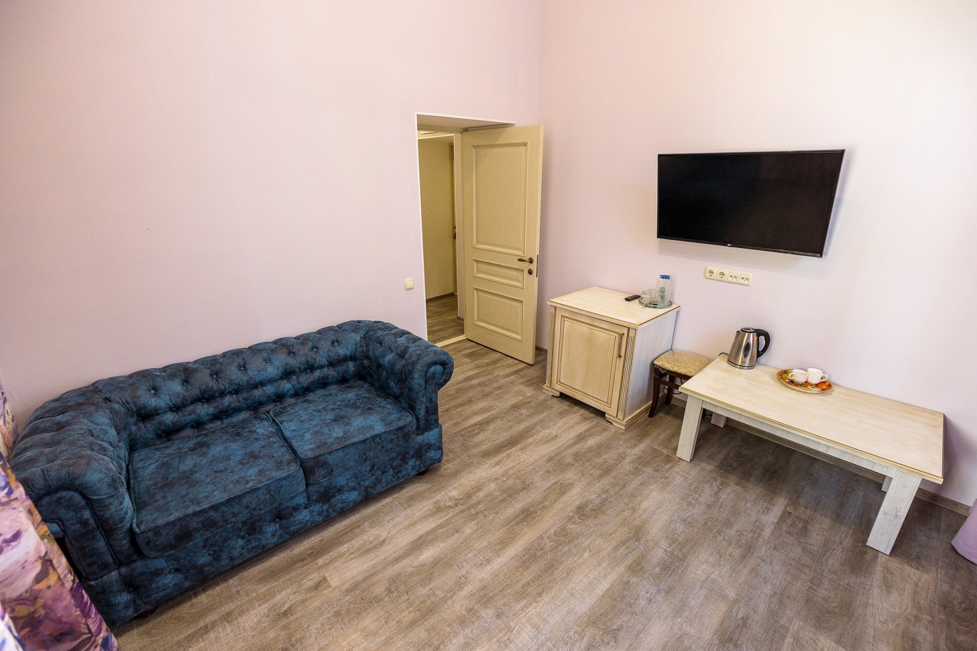 Номер категории «Стандарт двухкомнатный» представлен двухкомнатным двухместным гостиничного типа. Данная категория номера представлена без балкона с видом на старинный парк санатория и внутренний дворик.