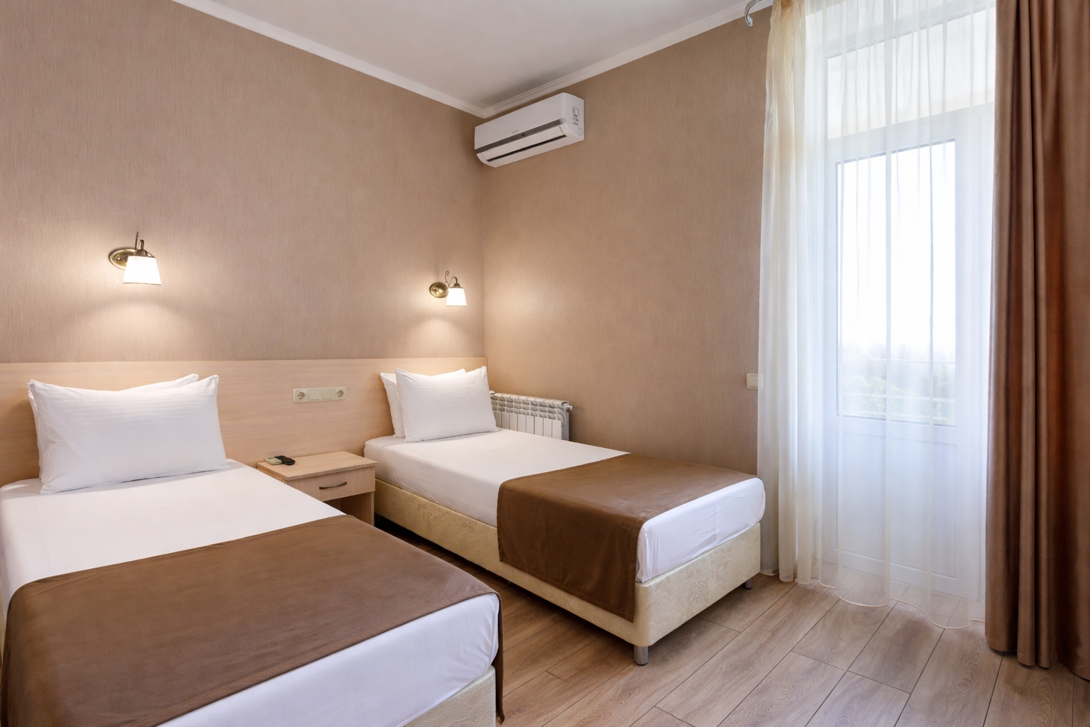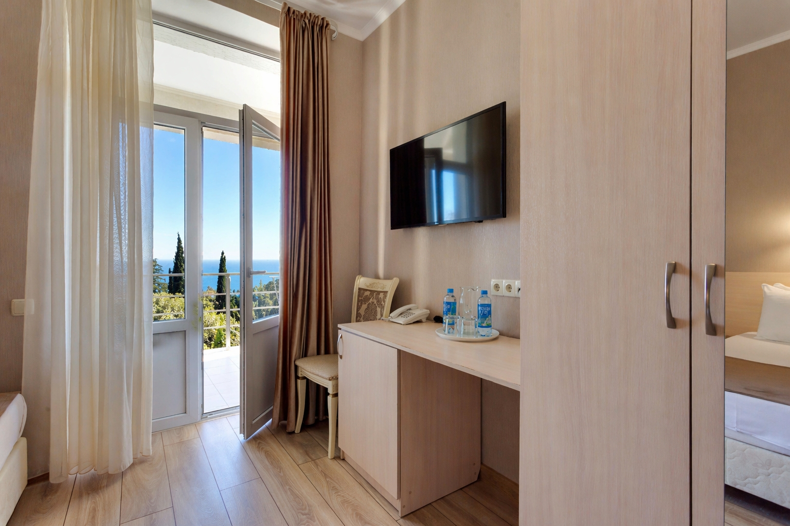 Номера категории «Стандарт» представлены однокомнатными двухместными номерами гостиничного типа в Корпусе 3. Данная категория номеров представлена с балконом, вид на море и старинный парк санатория.