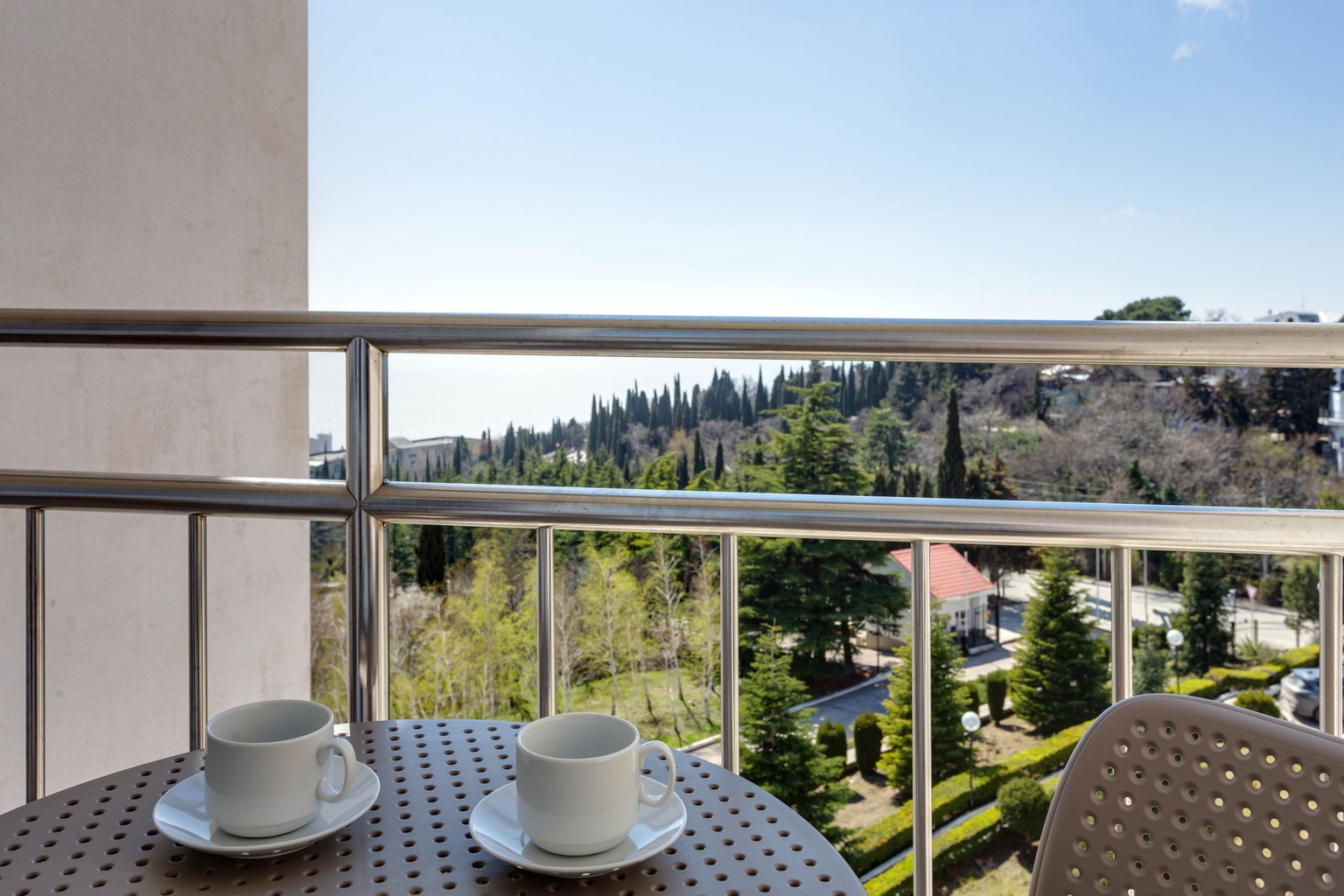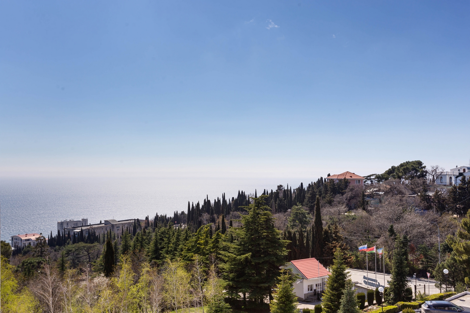 Номера категории «Джуниор Сюит» представлены двухкомнатными двухместными номерами гостиничного типа в Корпусе 5. Данная категория номеров представлена с балконом, вид на море или на горы, а также на парк санатория.