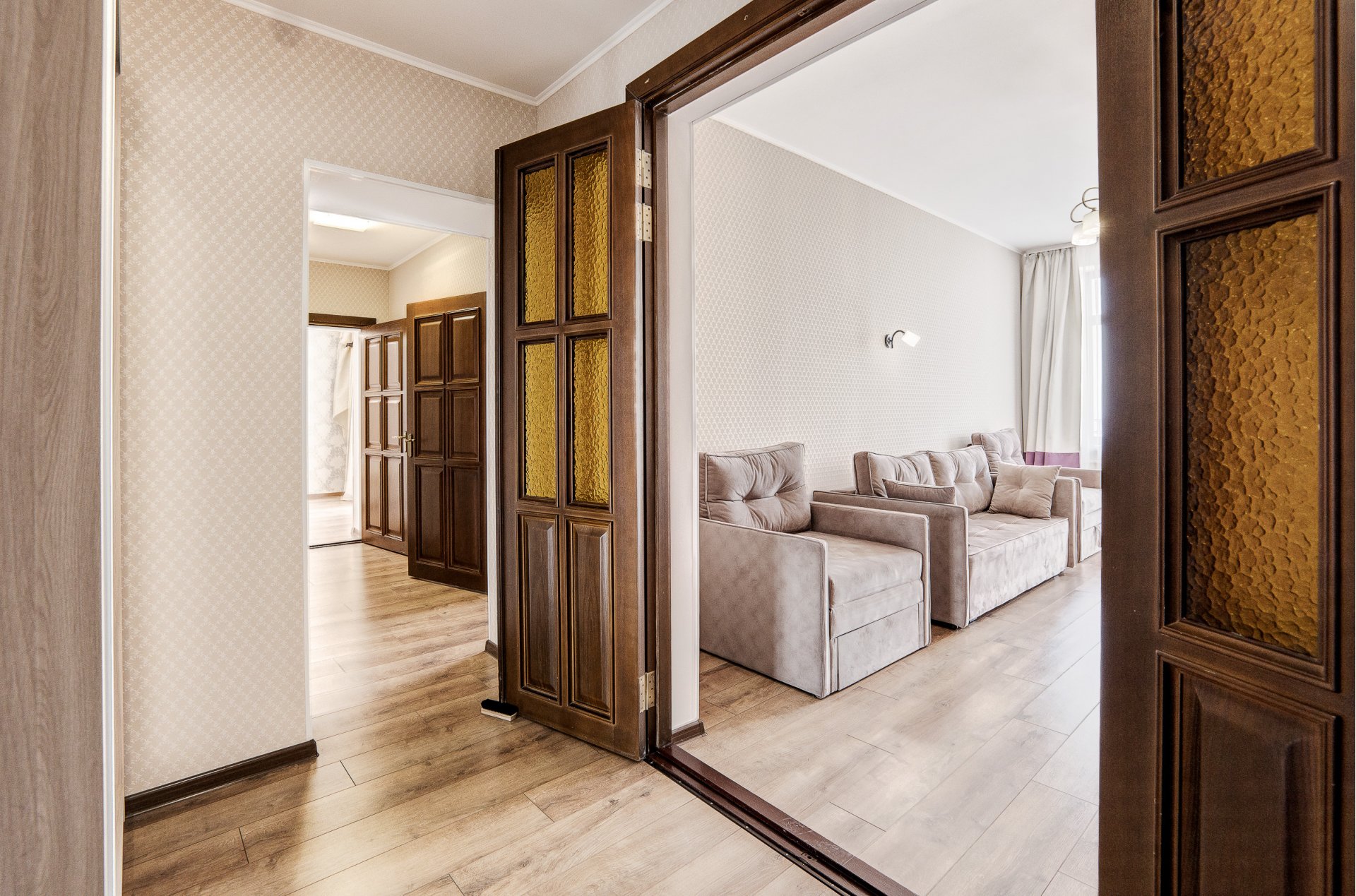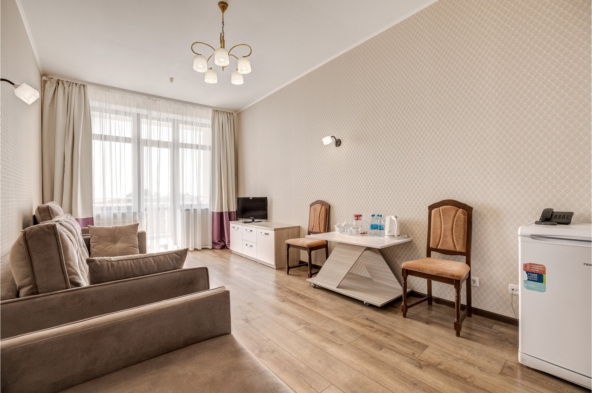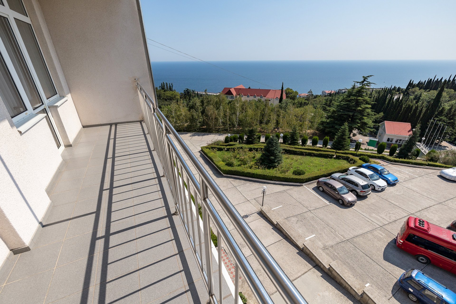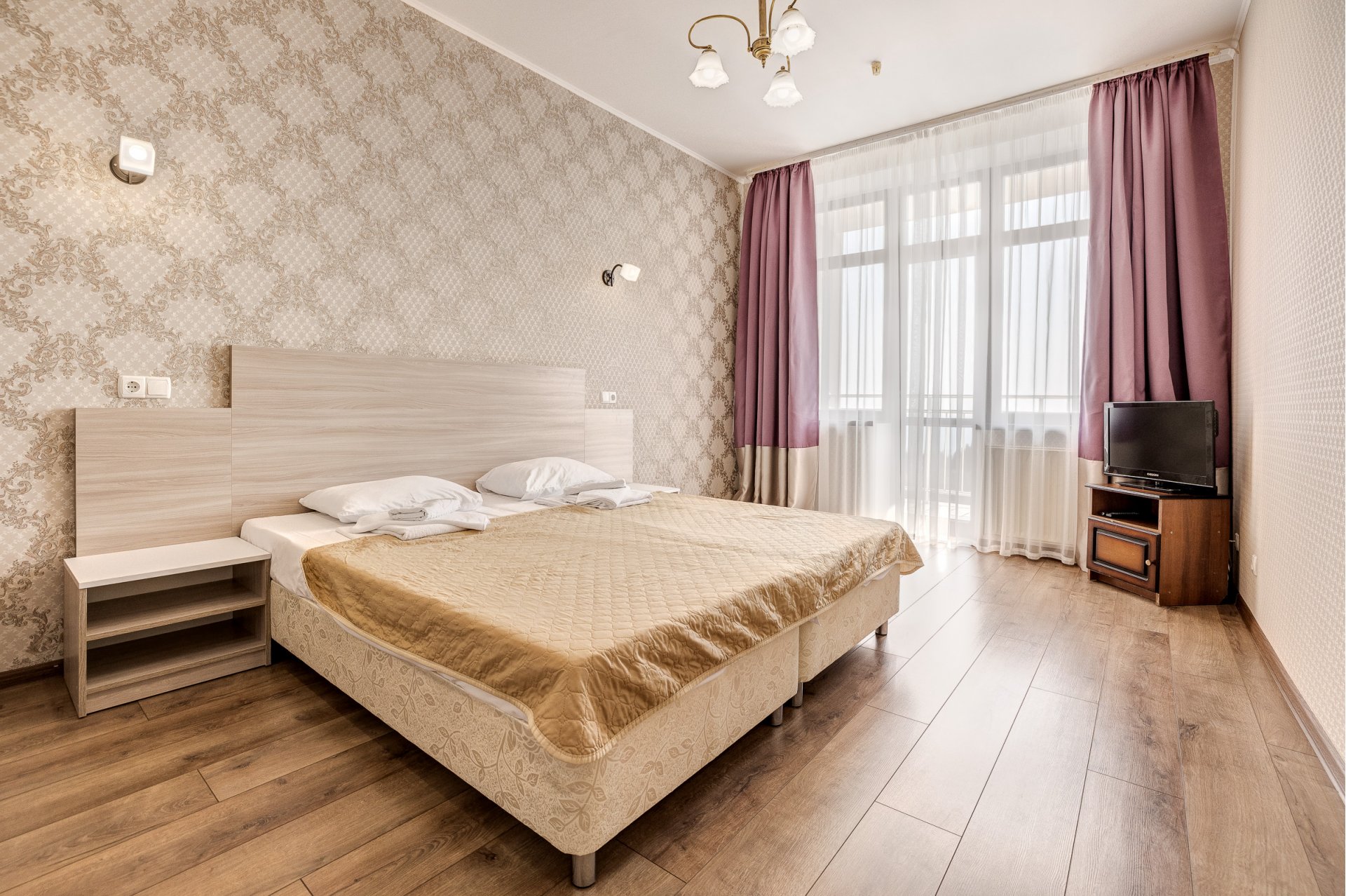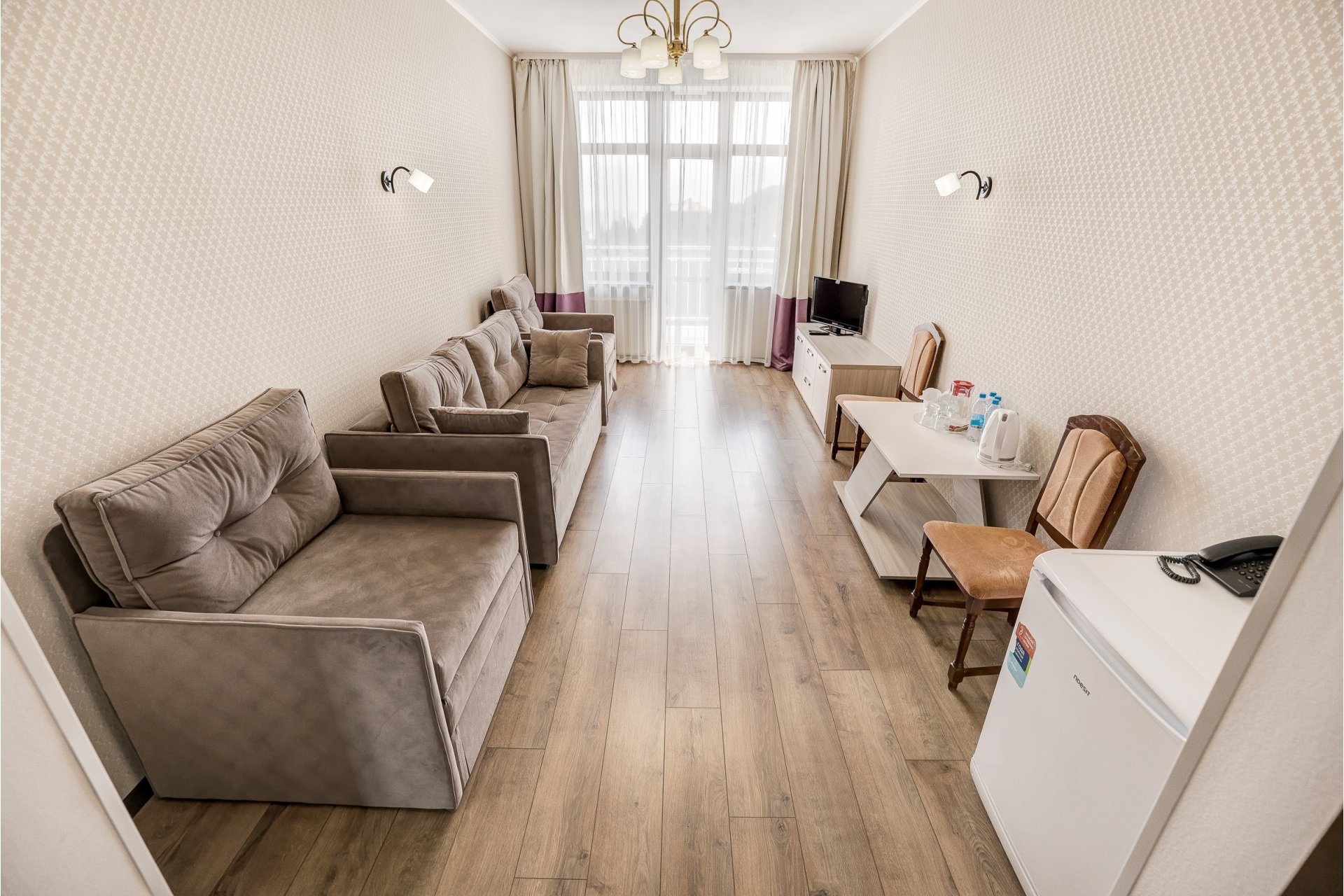 Номера категории «Люкс» представлены трехкомнатными двухместными номерами гостиничного типа в Корпусе 5. Данная категория номеров представлена с балконом, вид на море или на горы, а также на парк санатория.