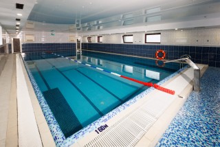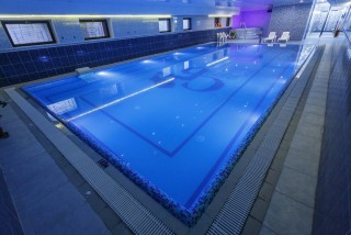 В крытом бассейне санатория «Белоруссия» (размер бассейна: 4,5м x 16м, глубина от 1,4 до 1,6 м.) — чистейшая подогреваемая вода.